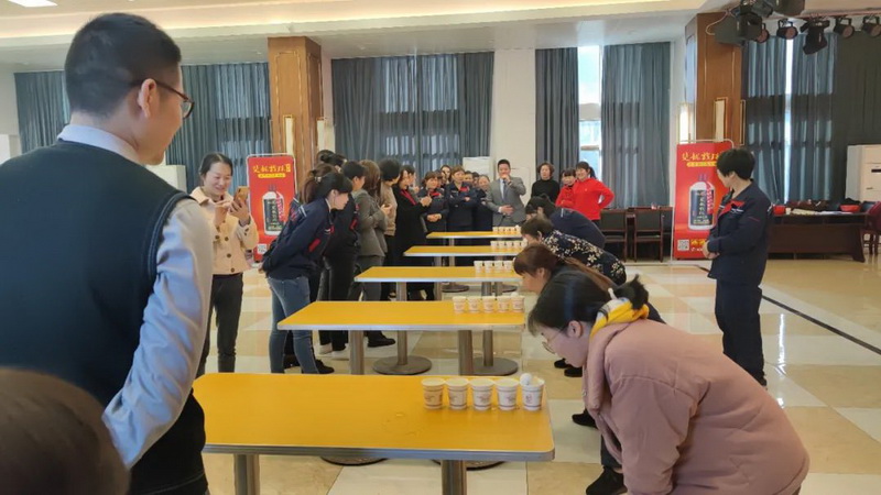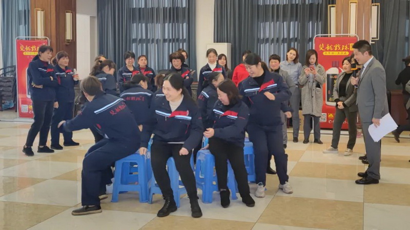 下午15時(shí),在雙龍戲珠酒業(yè)10樓多功能廳,乒乓球團(tuán)隊(duì)接力、吹乒乓球、搶凳子游戲和全員博餅活動(dòng)接連上演。女職工之間配合默契,現(xiàn)場(chǎng)充滿了大家的歡聲笑語(yǔ)。