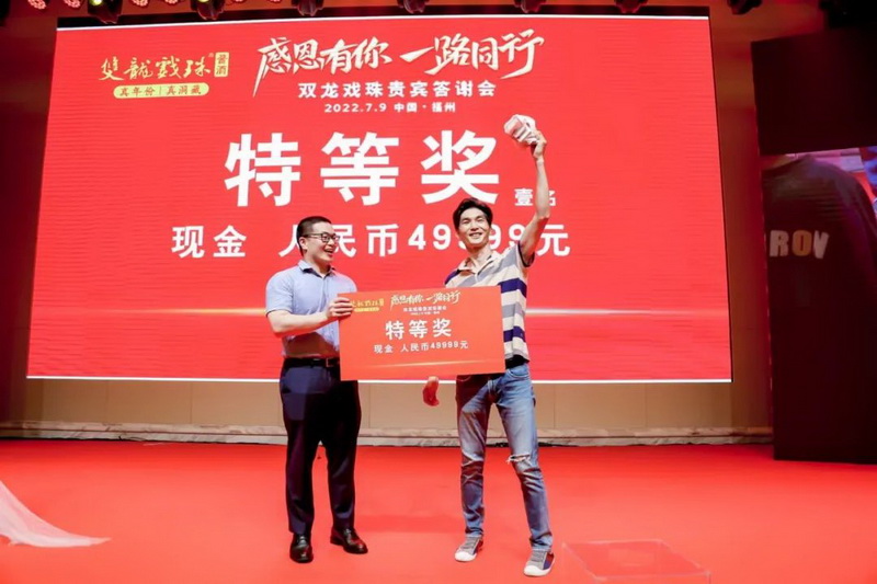 雙龍戲珠酒業(yè)總經(jīng)理黃盛堯在致辭中說道,6月以來,我們接連組織了多場回饋廣大消費(fèi)者的雙龍戲珠貴賓答謝會,多地聯(lián)動,品牌熱議;雙龍戲珠的發(fā)展離不開大家的支持,發(fā)展的成果也將與大家共享。希望我們一路同行,共同譜寫新的篇章!
