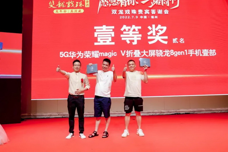 在每輪節(jié)目過后,現(xiàn)場都抽取了幸運(yùn)觀眾并送出重磅大獎,榮耀折疊屏手機(jī)、10克雙龍戲珠金條、華為手表、2.5L1985醬酒壇酒,更有49999元現(xiàn)金大獎!五輪的抽獎環(huán)節(jié)將現(xiàn)場氣氛推向了最高潮。