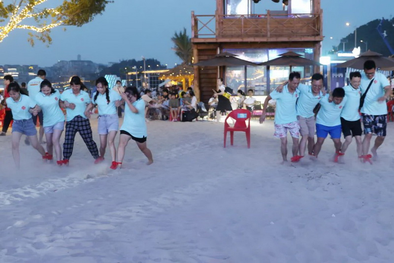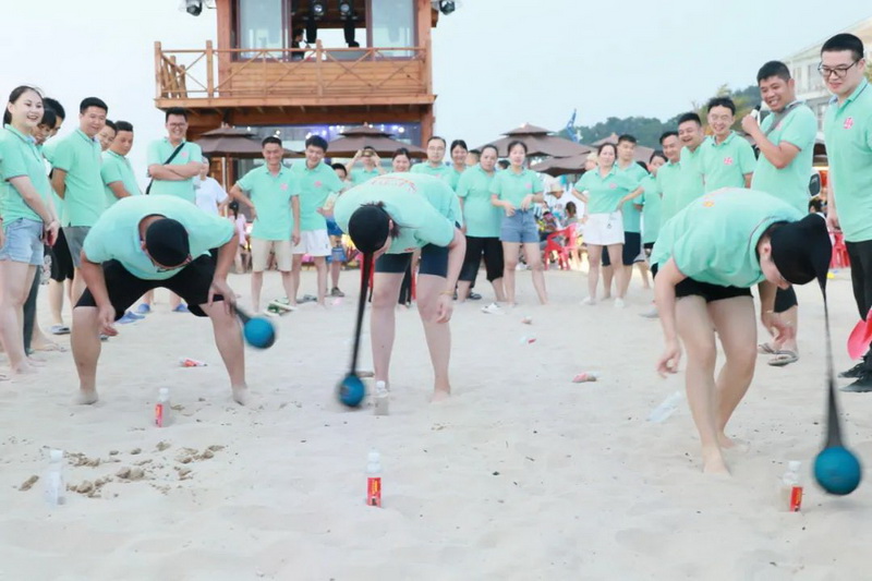 7月16日從溫州市區(qū)出發(fā),途經(jīng)洞頭漁村,雙龍戲珠團(tuán)隊終于抵達(dá)最后的目的地--韭菜岙沙灘,“怪獸過河”、“絲襪保齡球”、“三人兩足”等活動接連上演,歡笑聲瞬間就讓整片沙灘變成雙龍戲珠的主場。分組參與的方式,更讓大家明白“團(tuán)結(jié)協(xié)作,合作共贏”既是團(tuán)隊的靈魂,也是工作的核心。
