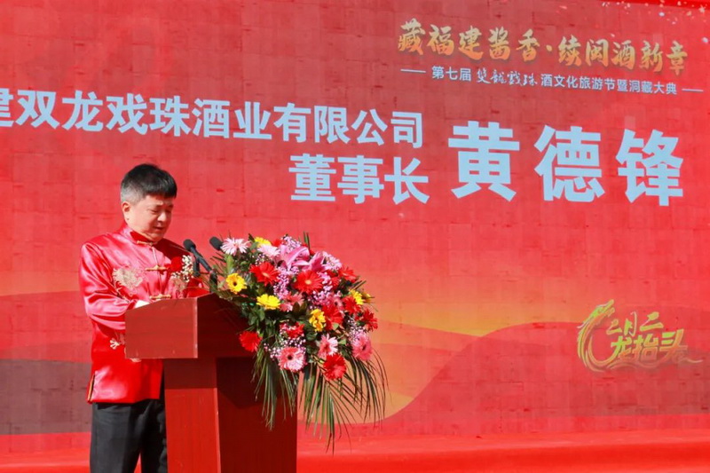 隨著領(lǐng)導(dǎo)嘉賓完成簽到、入座,“第七屆雙龍戲珠酒文化旅游節(jié)暨洞藏大典”正式開幕。福建雙龍戲珠酒業(yè)有限公司董事長黃德鋒首先致開幕辭,黃董事長表示,我們今后發(fā)展的道路會(huì)遇到這樣、那樣的困難。但是我們用至誠真心,釀最好美酒的初心不變,我們與參與者共享發(fā)展成果的初心不變,我們公司發(fā)展對(duì)社會(huì)有利的初心不變。