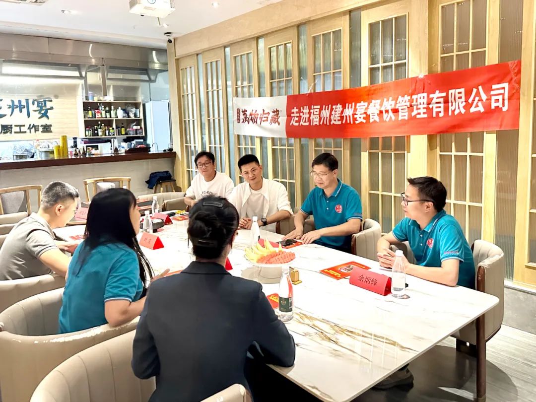 福州建州宴餐飲管理有限公司創(chuàng)始人吳烽對雙龍戲珠酒業(yè)一行的到來表示歡迎,他表示,與雙龍戲珠酒業(yè)的戰(zhàn)略合作充滿了期待,將秉持資源共享、優(yōu)勢互補的原則,通過各自在行業(yè)中的優(yōu)勢,打通高端圈層,進行更深層次的務實合作,在謀求攜手共贏的道路上行穩(wěn)致遠。隨后帶領大家一起參觀了解建州宴企業(yè),座談會上,向大家介紹了建州宴企業(yè)的發(fā)展歷程、業(yè)務范圍、企業(yè)規(guī)模、企業(yè)文化等情況。