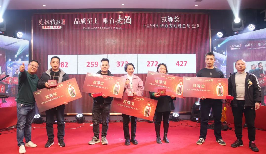 現(xiàn)場嘉賓一邊品嘗美酒佳肴,一邊欣賞精彩紛呈的節(jié)目,一邊期盼扣人心弦的抽獎。美酒美食美景,雙龍戲珠老酒之夜貴賓答謝宴徹底點燃了武夷山人民的熱情。