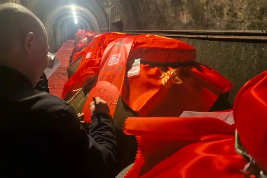 封壇活動(dòng)上,存酒客戶們進(jìn)行了雙龍戲珠洞藏醬酒探秘之旅,進(jìn)入雙龍洞封壇,貼原酒號(hào)碼貼、封條簽名、持收藏證合影留念,了解建甌三千年酒文化,體驗(yàn)12987坤沙醬香工藝,參觀生態(tài)洞藏儲(chǔ)酒區(qū)——“東南第一洞藏”雙龍洞。