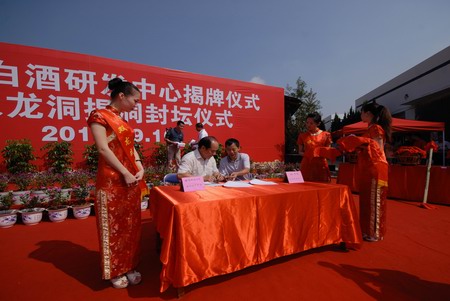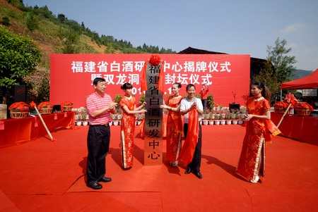 2010年9月16日上午福建省白酒研發(fā)中心揭牌儀式暨雙龍洞揭洞儀式在我公司舉行,南平市老領(lǐng)導(dǎo)宮維祺、建甌市委常委政協(xié)主席吳劍琴、市委常委市委副書記林飛、宣傳部長(zhǎng)謝秀端、副市長(zhǎng)夏邵平等領(lǐng)導(dǎo)出席儀式?;顒?dòng)期間中心與四川省釀酒研究所、福州大學(xué)等高校、科研單位與中心簽訂了長(zhǎng)期技術(shù)合作協(xié)議。同時(shí)廣大白酒愛好者積極收藏雙龍戲珠洞藏文化酒。