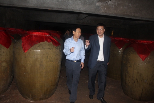 2011年11月3日建甌市委書記余建坤到我公司指導工作,與(全國五一勞動獎章獲得者、福建省勞模)董事長馮國華親切交談;并對雙龍戲珠做強做大給予了寶貴意見,對雙龍戲珠打造建甌酒城所作貢獻給予肯定。