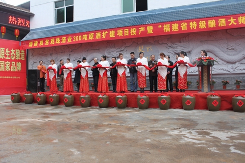2012年12月12日雙龍戲珠酒業(yè)300噸原酒擴(kuò)建項(xiàng)目投產(chǎn)暨福建省特級(jí)釀酒大師頒證儀式在我司隆重舉行。福建省酒業(yè)協(xié)會(huì)秘書(shū)長(zhǎng)朱榕光、南平市企業(yè)家聯(lián)合會(huì)會(huì)長(zhǎng)宮維祺、建甌市市長(zhǎng)陳宗榮、建甌市人大常委會(huì)主任陳祥平、建甌市政協(xié)主席吳劍琴等領(lǐng)導(dǎo)出席儀式。副市長(zhǎng)鄭敏主持儀式,儀式上福建省酒業(yè)協(xié)會(huì)秘書(shū)長(zhǎng)朱榕光為雙龍戲珠酒業(yè)董事長(zhǎng)馮國(guó)華榮獲福建?。ㄎㄒ唬┨丶?jí)釀酒大師頒發(fā)證書(shū)及牌匾,頒證儀式后參加儀式得各位領(lǐng)導(dǎo)為雙龍戲珠酒業(yè)300噸原酒擴(kuò)建項(xiàng)目投產(chǎn)剪彩。
