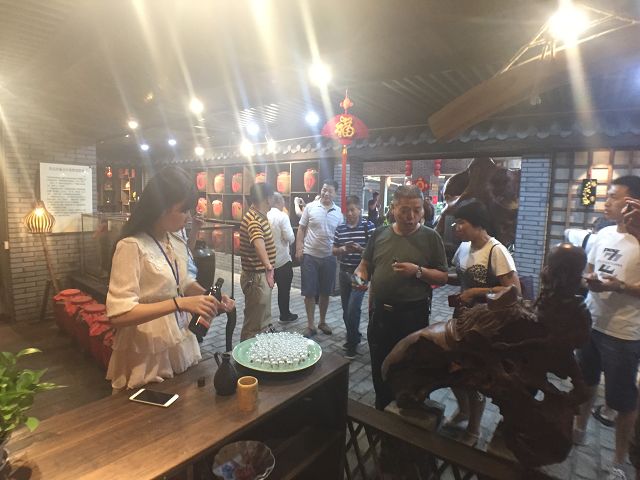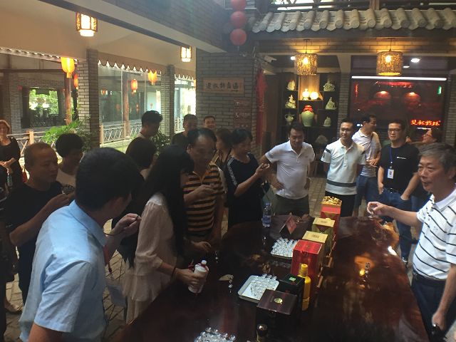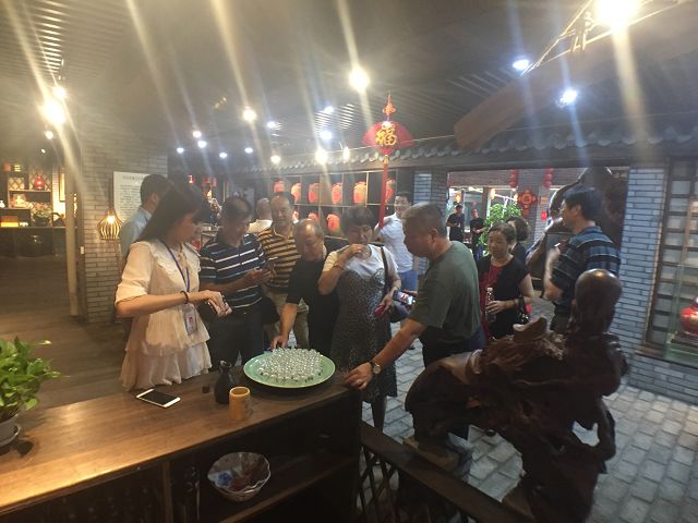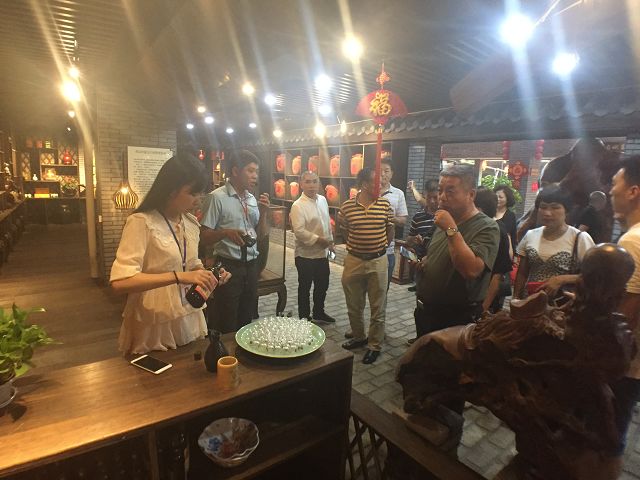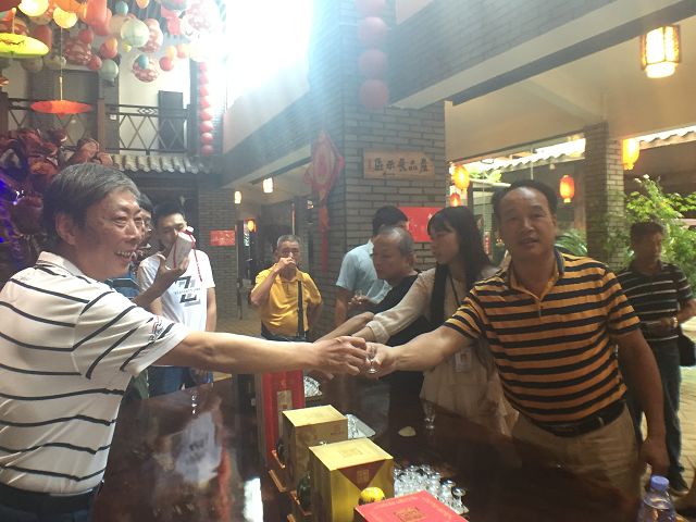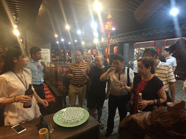 南平市青商會(huì)一行人在公司總經(jīng)理黃盛堯陪同下,相繼參觀了公司的產(chǎn)品展示大廳,白酒傳統(tǒng)釀制工藝,以及貯酒山洞——雙龍洞,與會(huì)嘉賓還品飲了雙龍戲珠白酒。