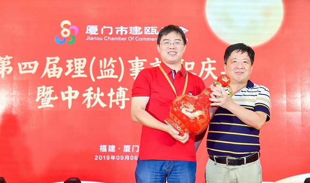 2019年9月6日福建雙龍戲珠酒業(yè)有限公司傾情助力廈門市建甌商會(huì)第四屆理(監(jiān))事就職慶典暨中秋博餅晚宴。