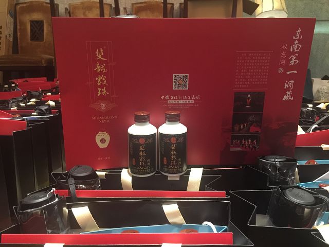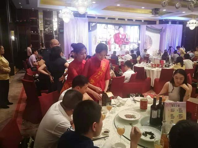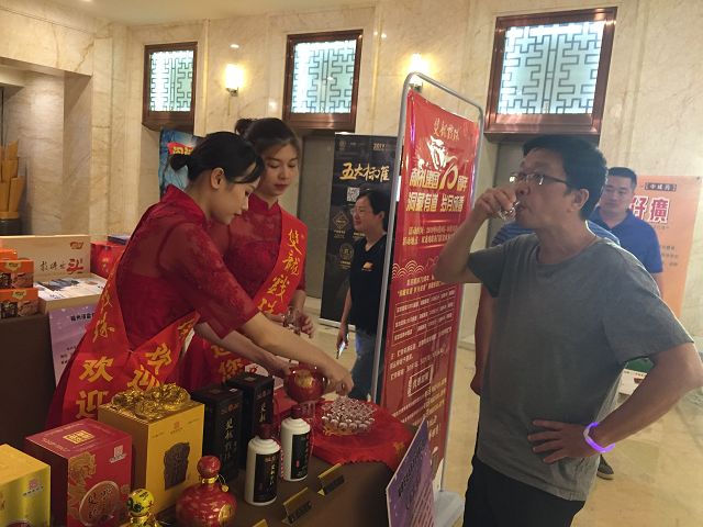 雙龍戲珠酒業(yè)現(xiàn)場產(chǎn)品展示、來賓現(xiàn)場品鑒美酒