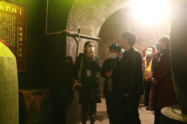 在雙龍洞,面對洞內(nèi)陳列著的從酒廠成立至今的雙龍戲珠酒以及撲鼻而來的濃郁的酒香味,領導們不約而同地發(fā)出了由衷的贊嘆。