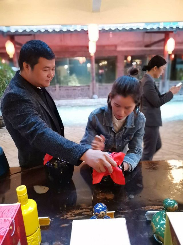 援鄂英雄們在雙龍戲珠英雄酒上簽上自己的名字來見證這個時刻。